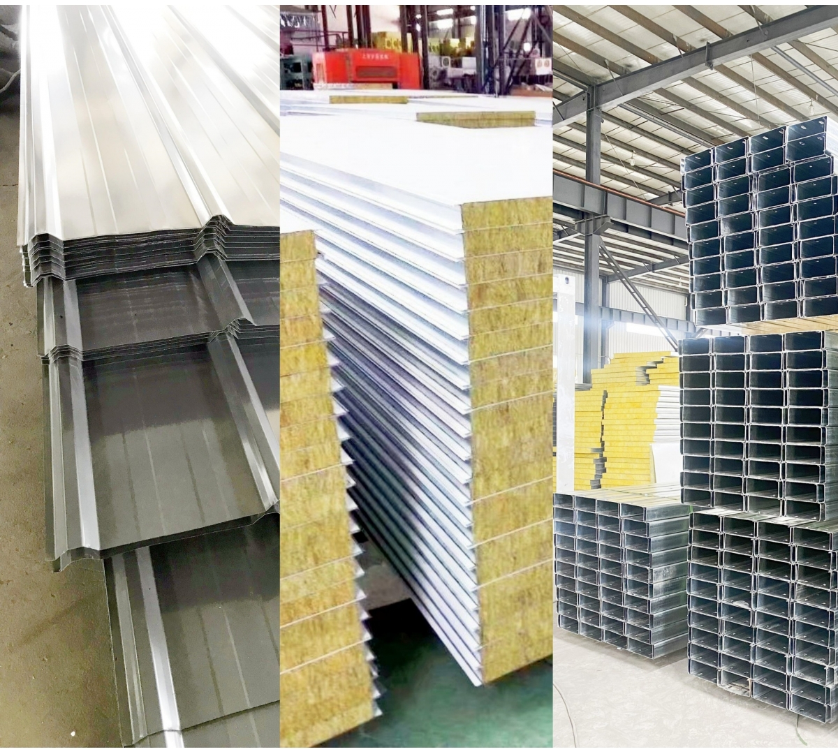 巖棉板、C型鋼/彩鋼瓦、鋼筋樓承板: